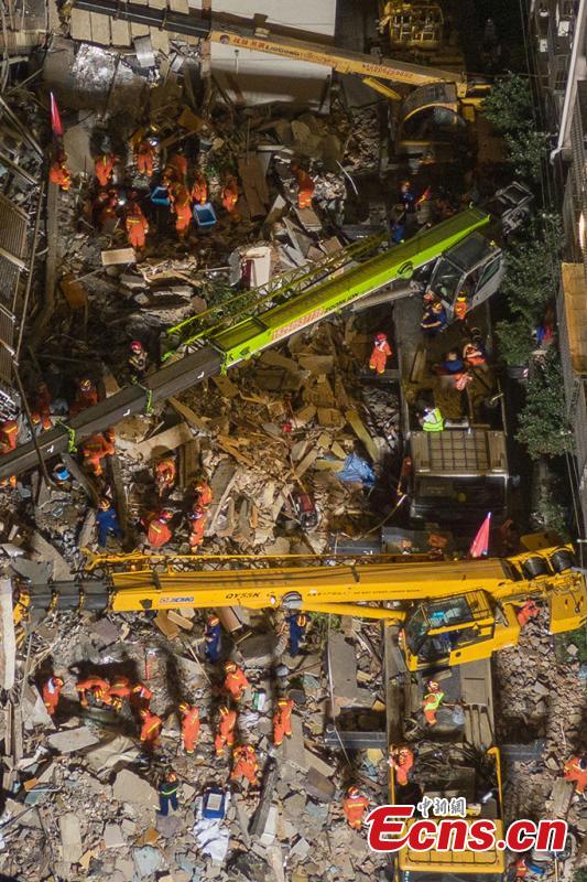 As of 7 a.m. on Tuesday, 14 people had been rescued, with 8 dead. Rescue efforts are still ongoing, and the cause of the collapse is under investigation.