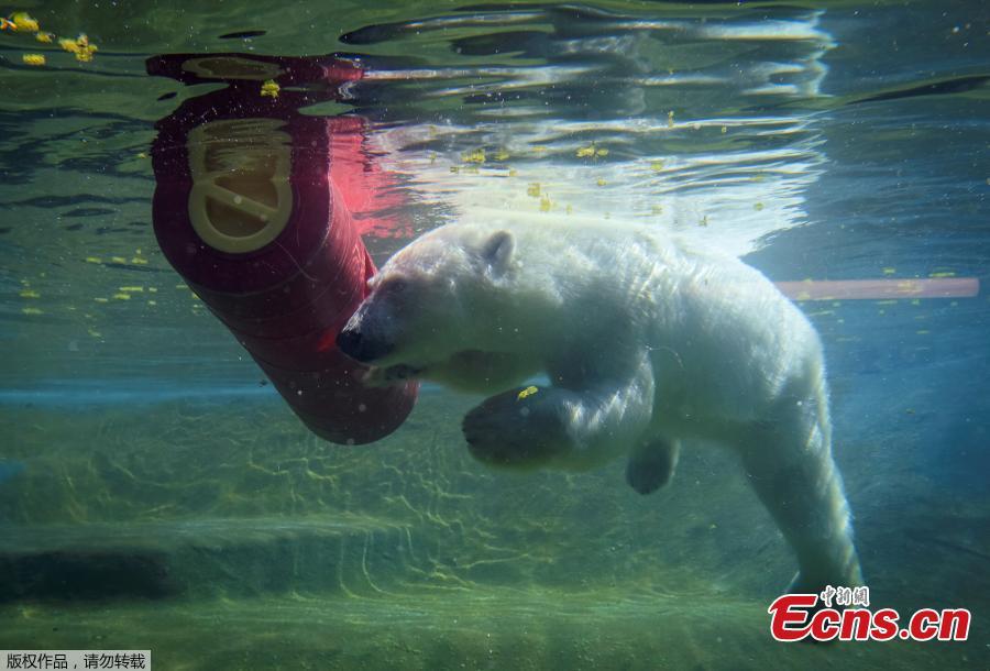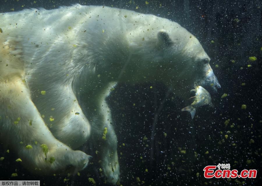 A polar bear cools off during a hot summer day in its enclosure at the Moscow Zoo in Moscow, Russia, July 12, 2021. (Photo/Agencies)