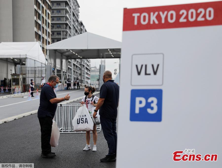 A team official of U.S. is seen at the entrance of the Athletes Village ahead of the Tokyo 2020 Olympic Games that have been postponed to 2021 due to the coronavirus disease (COVID-19) pandemic, in Tokyo, Japan July 13, 2021. (Photo/Agencies)