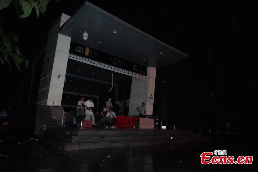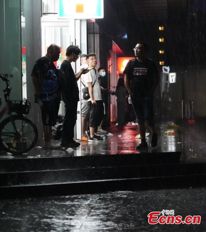 Residents seek shelter at buildings in Zhengzhou, Henan Province, July 21, 2021. (Photo: China News Service/ Kan Li)