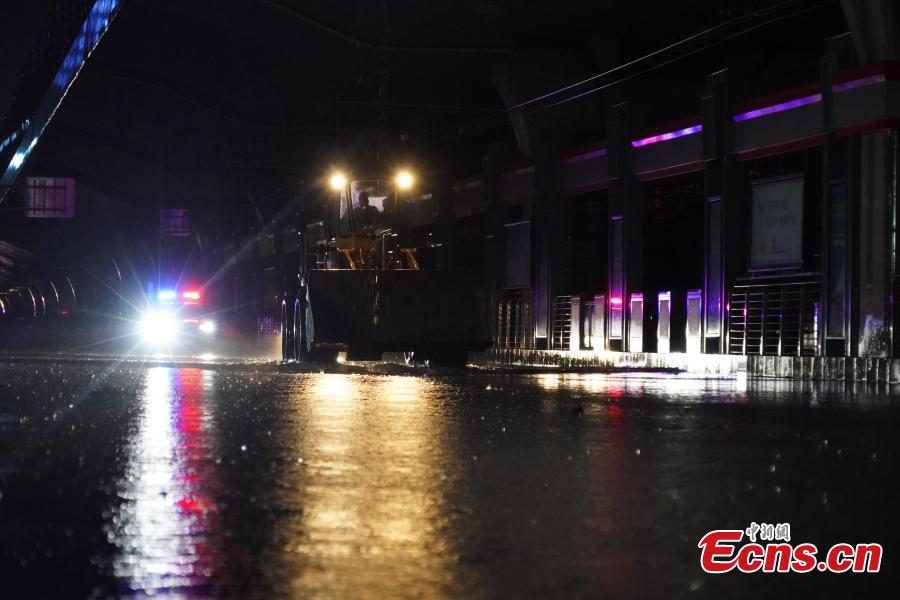 A forklift works on a street in Zhengzhou, the capital city of Henan Province on July 21, 2021. (Photo: China News Service/ Kan Li)