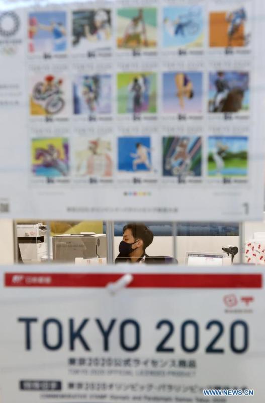 A staff member works at a post office at the Main Media Center (MMC) of Tokyo 2020 in Tokyo, Japan, July 22, 2021. The opening ceremony of Tokyo 2020 Olympic Games will be held on Friday. (Xinhua/Luo Yuan)