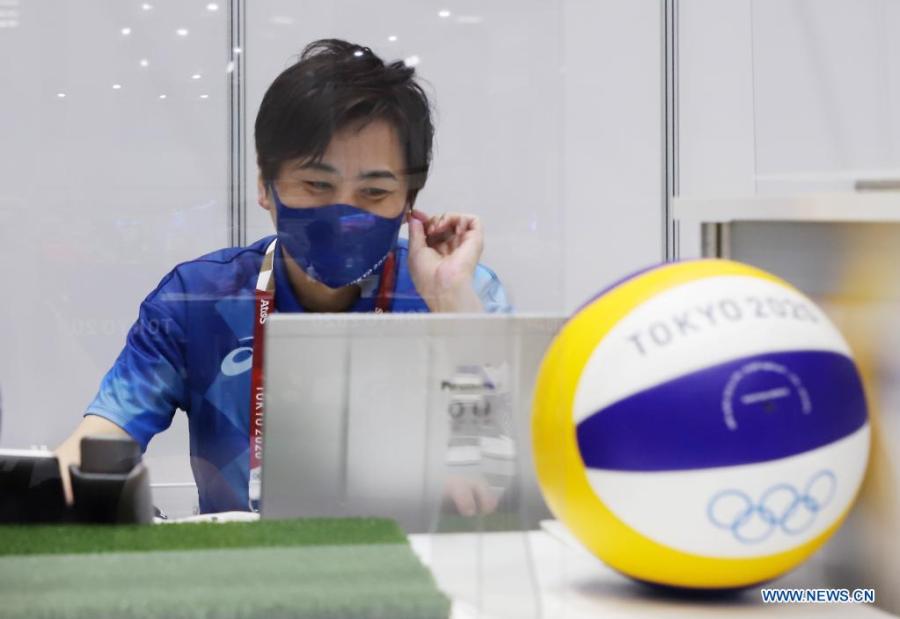 A staff member works at the Main Media Center (MMC) of Tokyo 2020 in Tokyo, Japan, July 22, 2021. The opening ceremony of Tokyo 2020 Olympic Games will be held on Friday. (Xinhua/Luo Yuan)