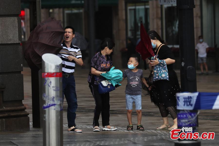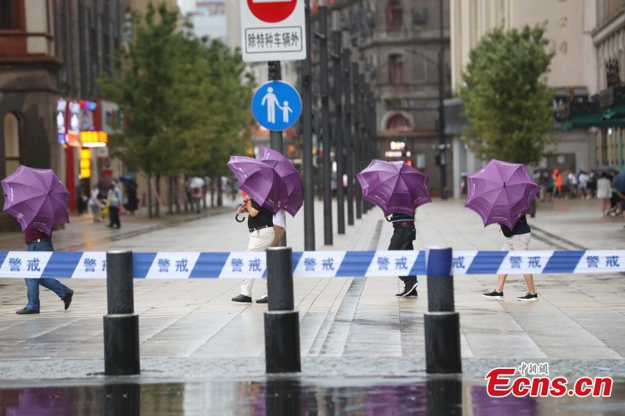 The Bund in Shanghai is temporarily closed to brace for the typhoon In-Fa on July 25, 2021. Safety inspection has been enhanced at the Bund and tourists have been advised to leave the region on Sunday. (Photo: China News Service/Zhang Hengwei)