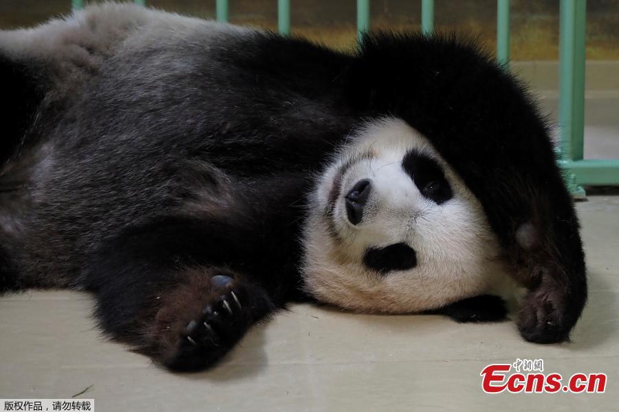 Pregnant female giant panda Huan Huan sleeps inside her enclosure prior to giving birth at Beauval Zoo in Saint-Aignan-sur-Cher, Central France, on August 1, 2021. (Photo/Agencies)