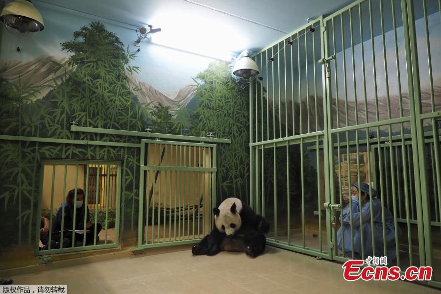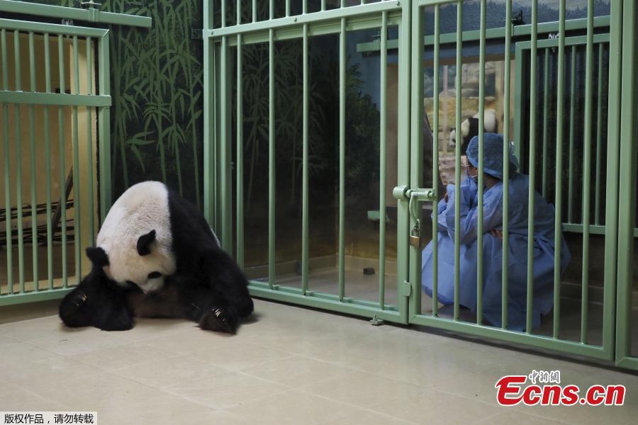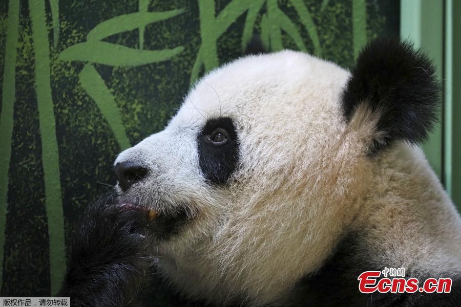 Pregnant female giant panda Huan Huan reacts before giving birth at Beauval Zoo in Saint-Aignan-sur-Cher, central France, on August 1, 2021. (Photo/Agencies)