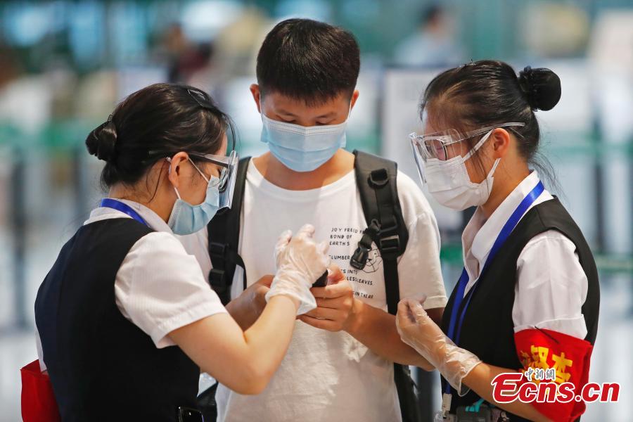 Shanghai Hongqiao Airport and Shanghai Pudong International Airport have strengthened epidemic prevention and control measures following the recent outbreak of coronavirus in east China's Nanjing. Staff members were arranged to check the health code of all passengers arriving in Shanghai one by one. The health declaration desks were set up in airports for passengers to declare on their own initiative.