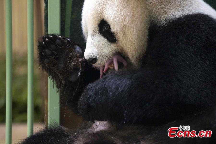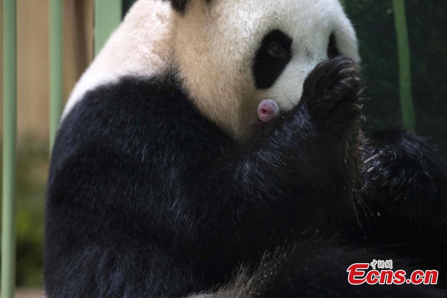This photo shows Huan Huan carries newly born cubs in her arms at Beauval Zoo in Saint-Aignan-sur-Cher, central France, on August 2, 2021. (Photo provided to China News Service by Beauval Zoo)