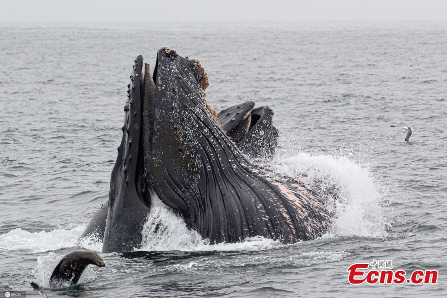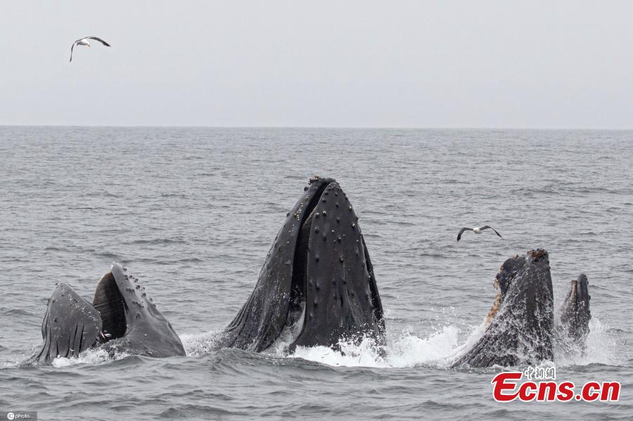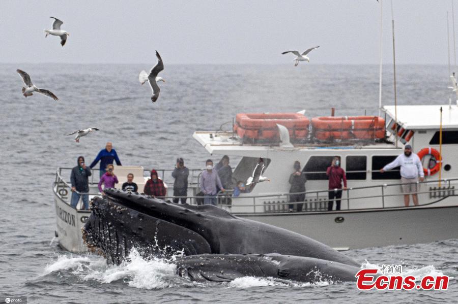 Photo released on Aug. 3, 2021 shows four huge humpbacks appear underneath a boat in Monterey Bay, California, the United States. (Photo/IC)