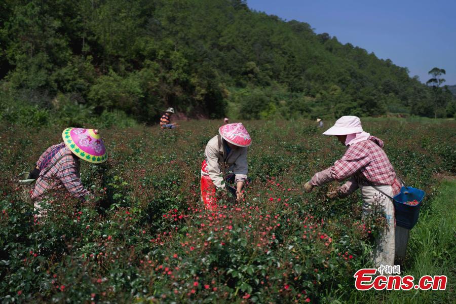 Rose industry is boosted in Dalongtan Township, Eshan Yi Autonomous County. In 2020, more than 1,200 farmers in the township planted over 3,000-mu (about 200 hectares) Damascus rose and Phnom Penh rose, with an income of more than 31.5 million yuan.