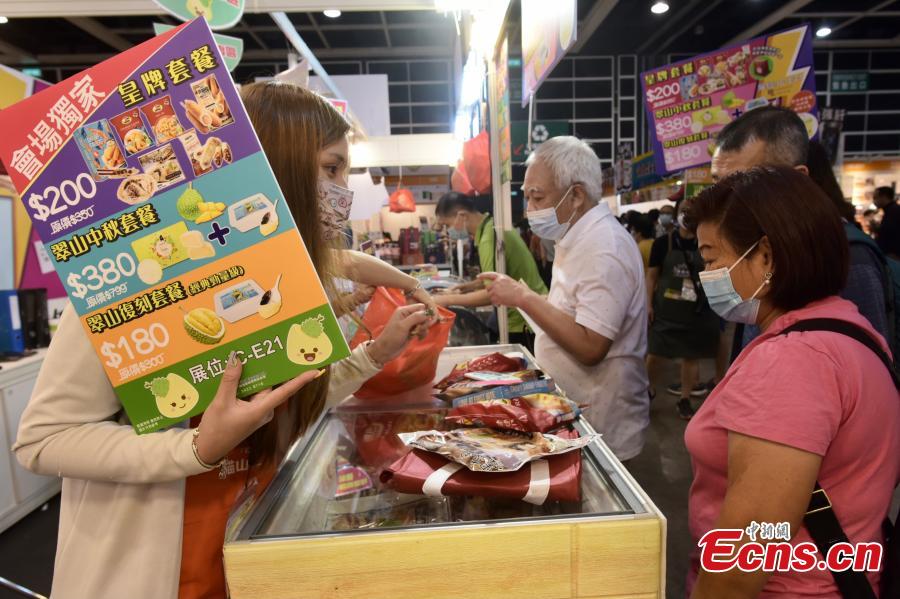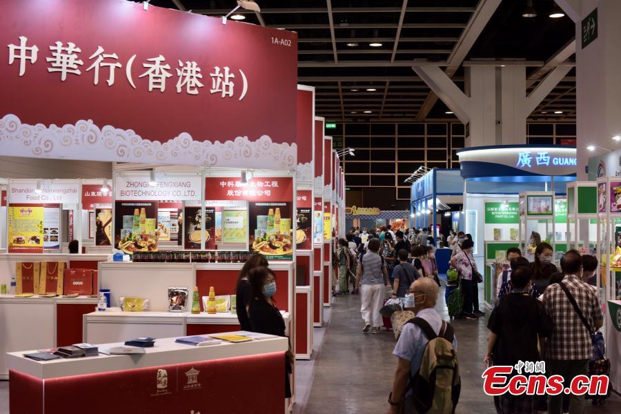 Snacks are presented at an exhibition held at Hong Kong Convention and Exhibition Centre, Wan Chai, Hong Kong Special Administrative Region, August 12, 2021. (Photo/ Li Zhihua)