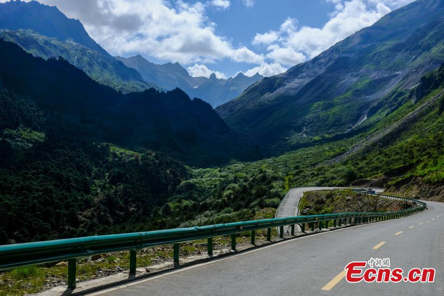 Photo taken in August 2021 shows the beautiful scenery along the road to Yumai Township in Shannan, southwest China's Tibet Autonomous Region. (Photo: China News Service/Jiang Feibo)