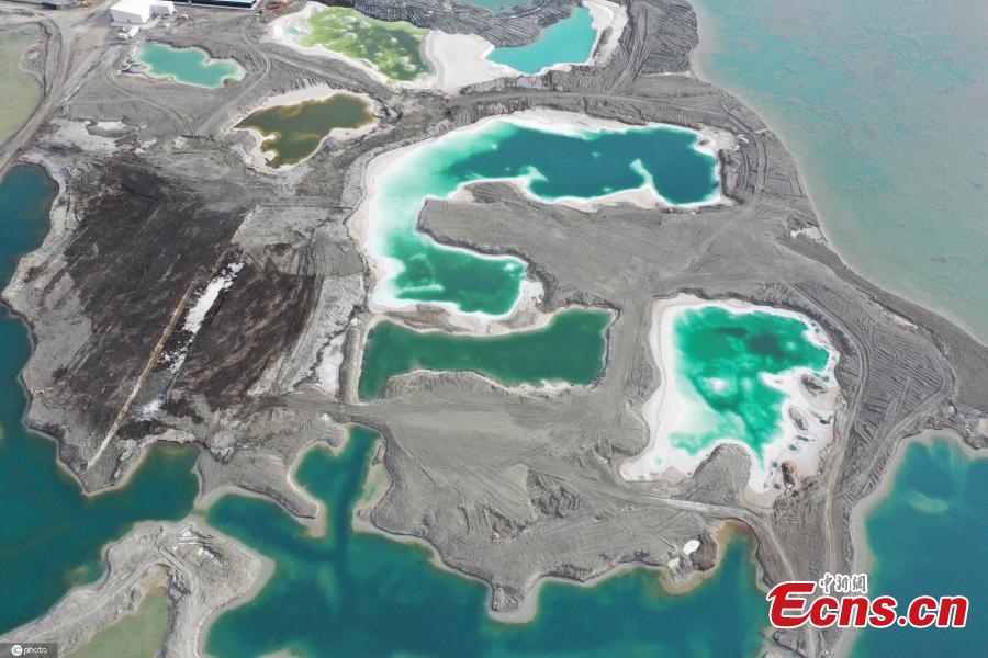 Aerial photo shows the eye-catching scenery of Emerald Lake in Da Qaidam (also known as Dachaidan) district in Haixi Mongolian and Tibetan Autonomous Prefecture, northwest China's Qinghai Province, August 17, 2021. (Photo/ICphoto)