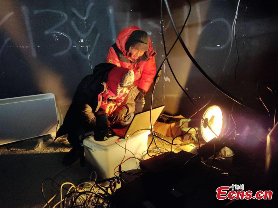 Photo taken on December 20, 2020, shows NAOC members work at the Lenghu site in northwest China's Qinghai Province. (Photo/Courtesy of Tian Cairang)