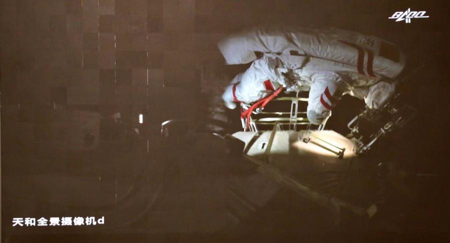 They completed the installation of foot limiter and extravehicular workbench on the robotic arm. The two astronauts cooperated with each other to install relevant equipment outside the space station with the aid of the robotic arm. Astronaut Tang Hongbo in the capsule supported the two astronauts to carry out their EVAs.
