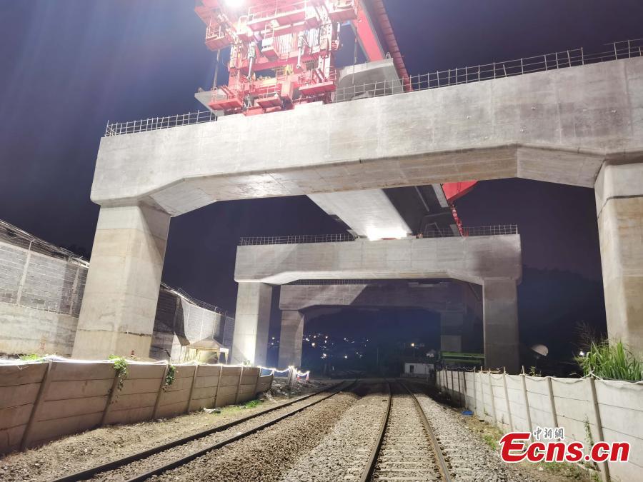 Photo taken on August 22, 2021 shows box girders on the railway of Indonesia's Jakarta-Bandung High Speed Railway. The erection of box girders on the railway was completed on Sunday. The high-risk project, built on DK1114 bridge, marked as a breakthrough of the railway's construction. (Photo by China News Service/ Wang Zengkun)