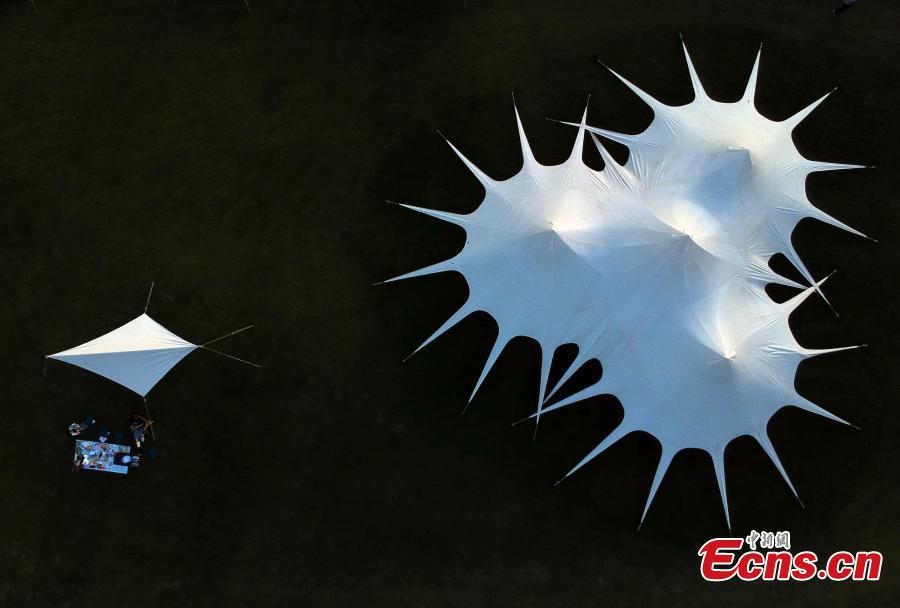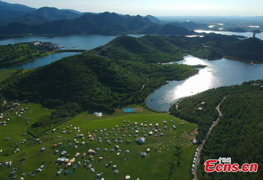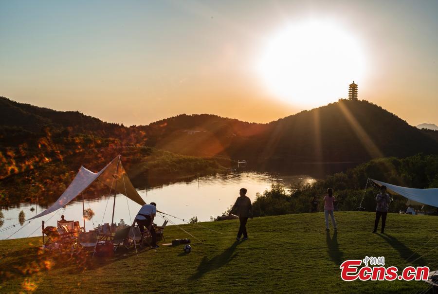People set up tents at the campground by Jinhai Lake, a scenic spot at the Pinggu district, Beijing, China, August 21, 2021. It has turned cool as autumn falls. (Photo: China News Service/ Hou Yu)