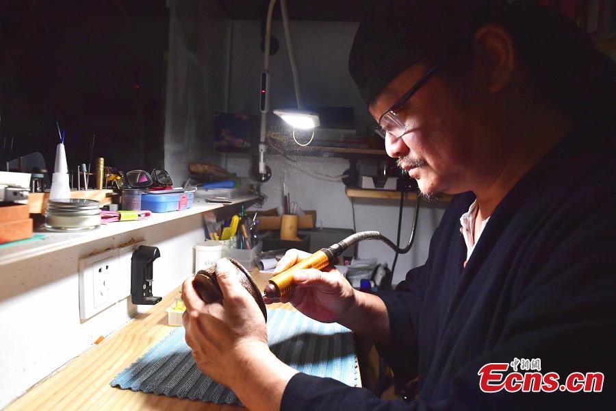 Huang, whose ancestral home is in Fujian Province, comes from China's Taiwan. He came to Fujian in 2017 and founded a Chinese lacquer crafting studio. He has attempted to combine lacquer crafting with pottery and tea sets, adding stylish elements to this traditional craft.