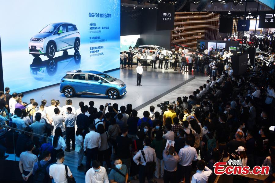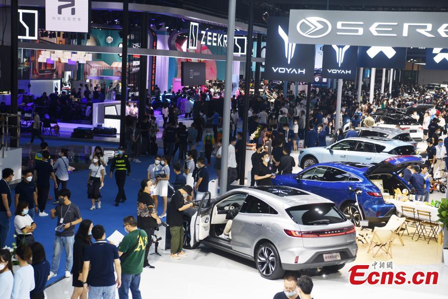 Domestic new energy vehicles debut at the 24th Chengdu International Motor Show in Chengdu, Sichuan Province on Aug. 29, 2021. (Photo: China News Service/Zhang Lang)