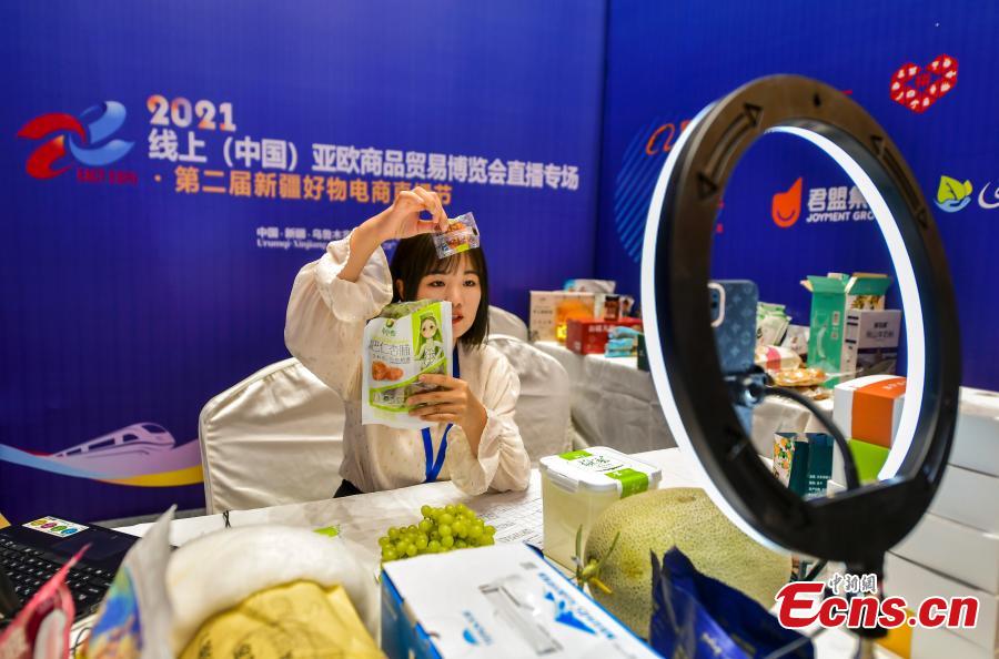 The 2021 Online Asia-Europe Commodity Trade Fair and the 2nd Xinjiang E-commerce Live Broadcast Festival were held in Urumqi on Sunday. The event integrated multiple live broadcast platforms and popular anchors to recommend Xinjiang agricultural products to netizens.