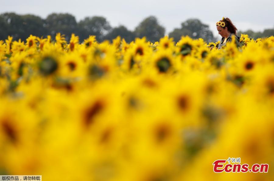 A woman stands among sunflowers at The Pop Up Farm in Flamstead, St Albans, Britain, August 29, 2021. (Photo/Agencies)