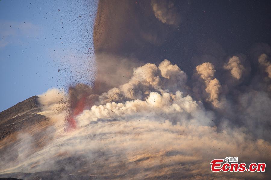 Mount Etna, Europe's most active volcano, erupts again on Aug 29 in Catania, Italy, spewing lava as high as 600 meters. The ash rained down on nearby villages. The last eruption of the volcano happened 20 days ago. (Photo/VCG)