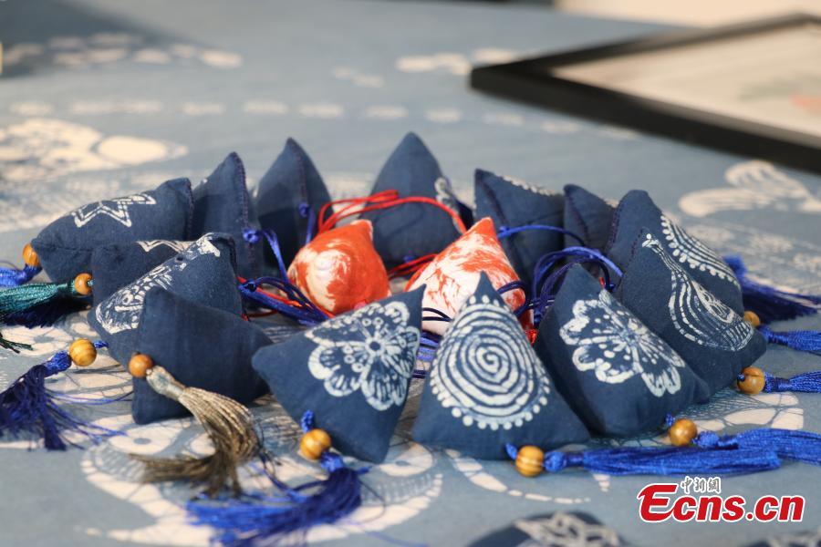 Batik art works are seen in Jianzhu Intangible Cultural Heritage Experience Base, Gulin County, Luzhou City, Sichuan Province, Aug. 30, 2021. (Photo/Zhang Lei)