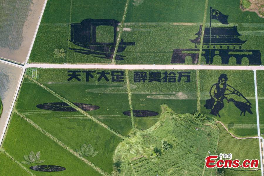 Aerial photo shows the magnificent rice paddy art pictures in Dazu District, Chongqing Municipality, Aug. 31, 2021. (Photo/He Penglei)
