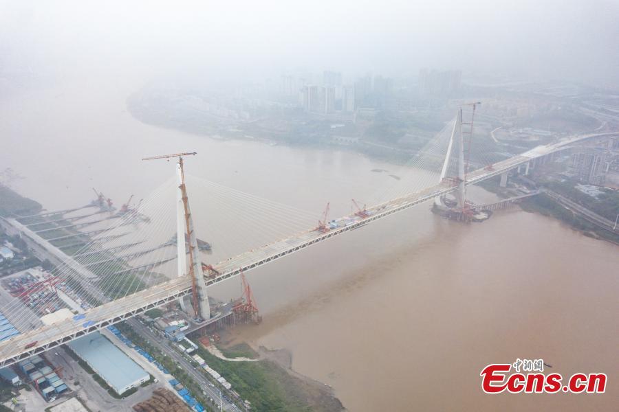 The Baijusi Yangtze River Bridge is connected in Chongqing Municipality, Sept. 1, 2021. (Photo/He Penglei)