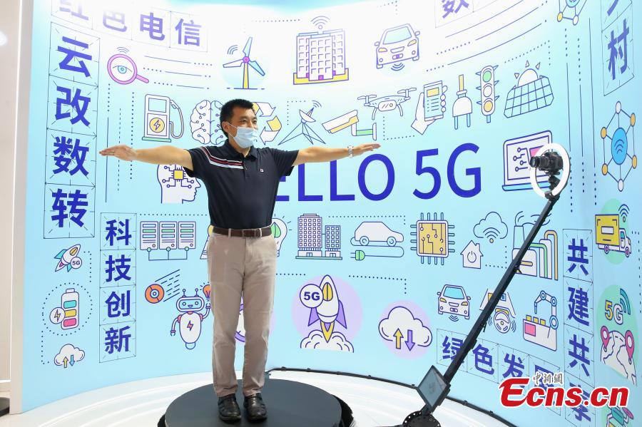 Visitors experience 5G stereo photography at a venue of the 2021 World 5G Convention in Beijing, capital of China, Sept. 1, 2021. (Photo: China News Service/Yi Haifei)