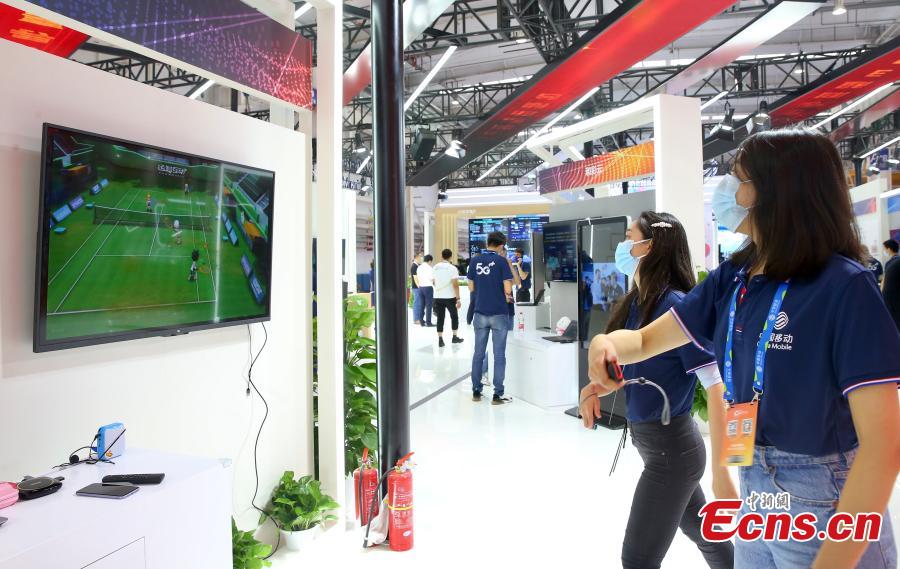 A staff member demonstrates 5G cloud games at a venue of the 2021 World 5G Convention in Beijing, capital of China, Sept. 1, 2021. (Photo: China News Service/Yi Haifei).