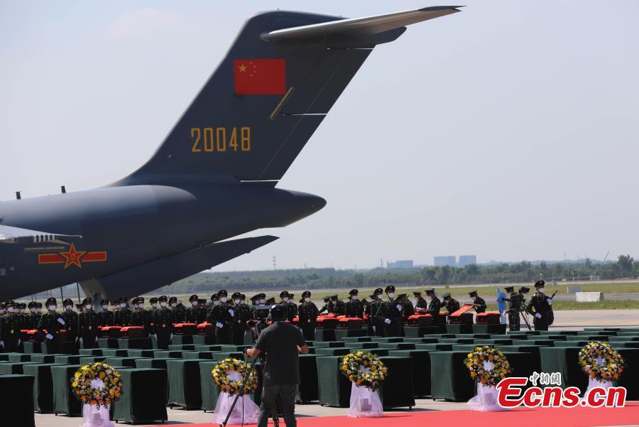 Y-20 strategic airlift aircraft, the Chinese Air Force's best transport plane, carries the remains and related relics, Sept. 2, 2021. (Photo: China News Service/Wang Jingwei)