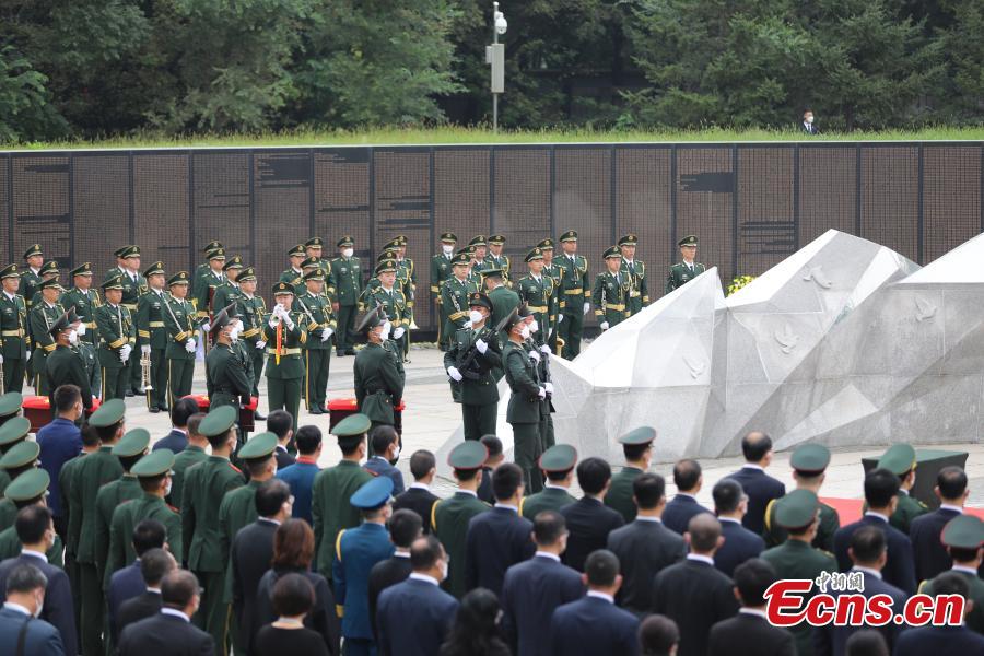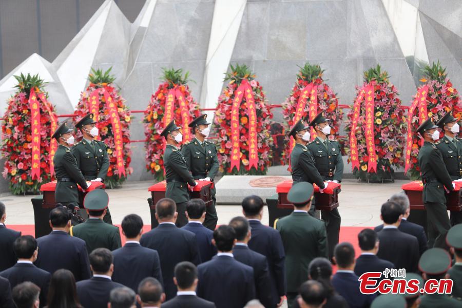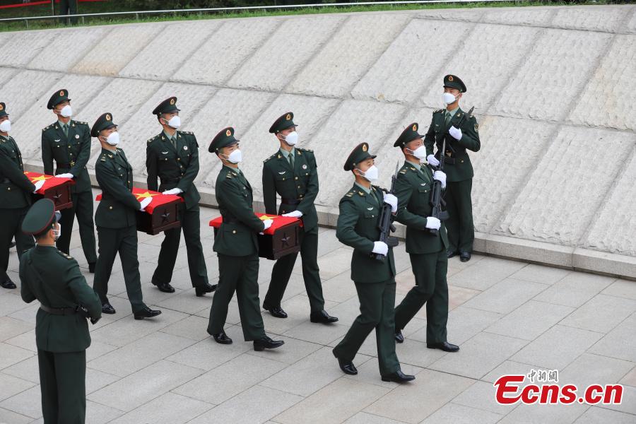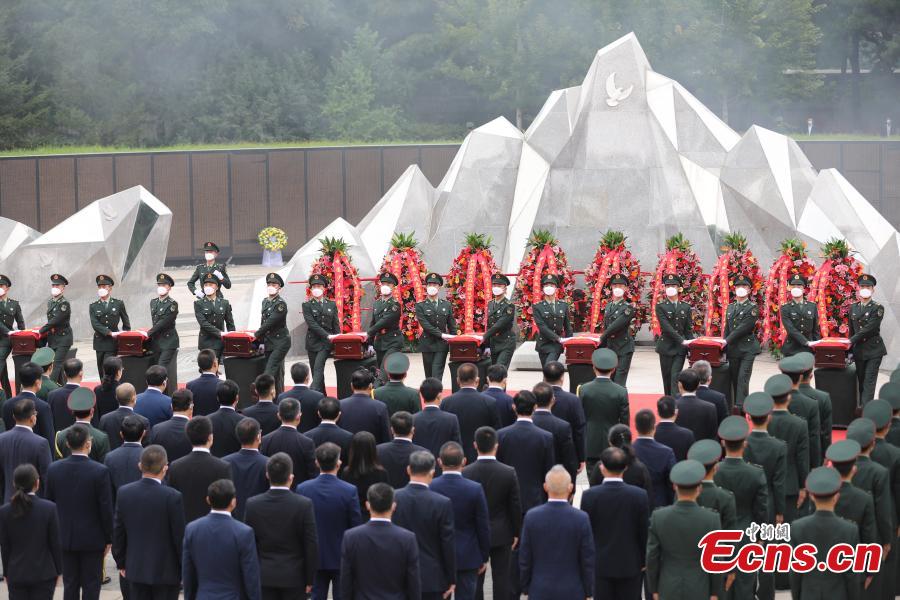 The remains of 109 Chinese soldiers killed in the 1950-53 Korean War were laid to rest in a cemetery in Shenyang, capital of northeast China's Liaoning Province, Sept.3, 2021. The remains and belongings of the fallen soldiers returned to China on Thursday from South Korea. (Photo: China News Service/Wang Jingwei)