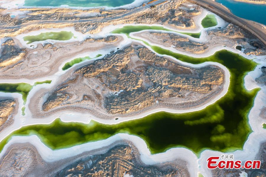Undated photo shows the eye-catching scenery of Emerald Lake in Da Qaidam (also known as Dachaidan) district in Haixi Mongolian and Tibetan Autonomous Prefecture, northwest China's Qinghai Province. (Photo: China News Service/Chen Falin)
