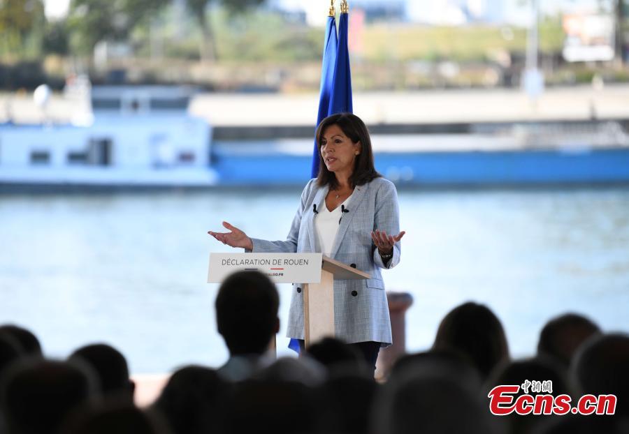 Paris Mayor Anne Hidalgo announces her candidacy for the next French president during a speech in Rouen, France, September 12, 2021. (Photo: China News Service/Li Yang)