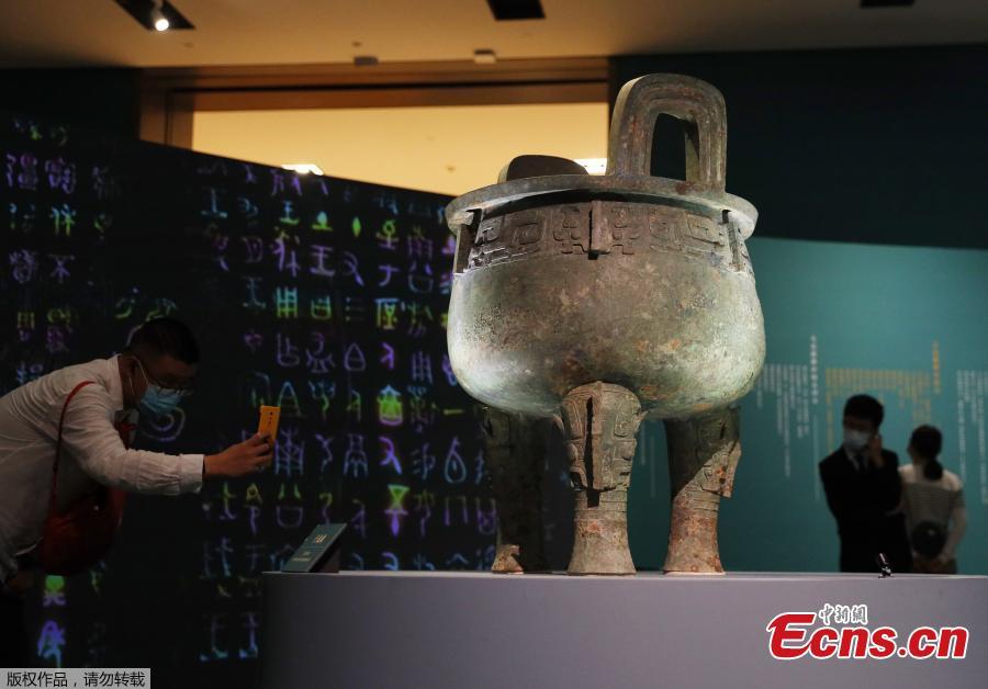 The exhibition showcasing bronze tripods of the Shang (1600-1046 BC) and Zhou (1046-221 BC) dynasties opened to the public on Tuesday. Nearly 40 cultural relics were on display, presenting the broad and profound traditional Chinese culture. Among them were the three most representative large bronze tripods -- Da Yu Ding, Zilong Ding and Da Ke Ding.