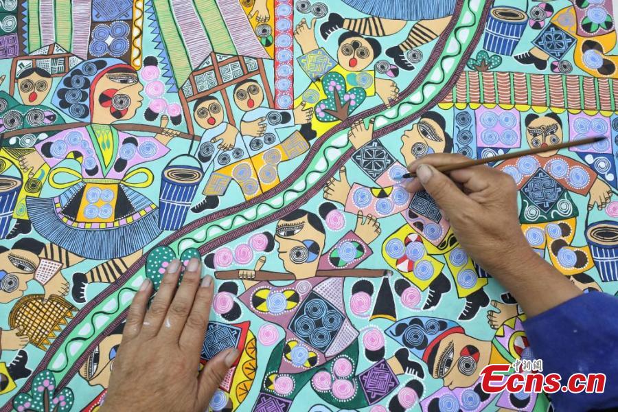 Photo taken on September 15, 2021 shows a Miao painting created by painters in Longli County of Qiannan Buyi and Miao Autonomous Prefecture, southwest China's Guizhou Province. (Photo: China News Service/Qu Honglun)