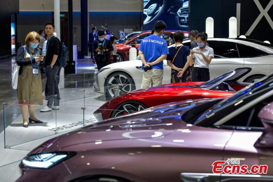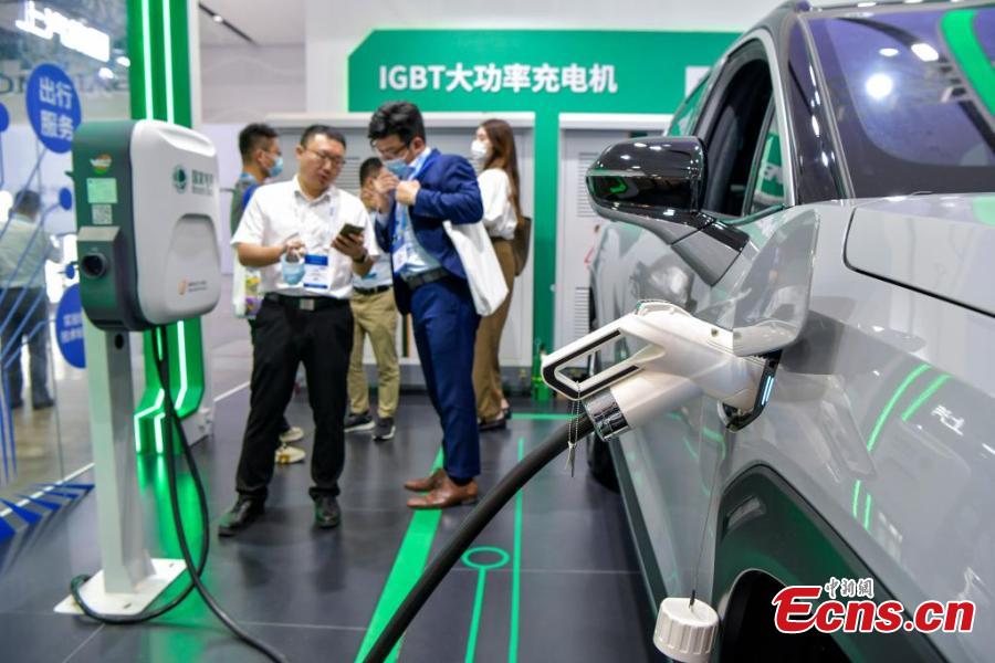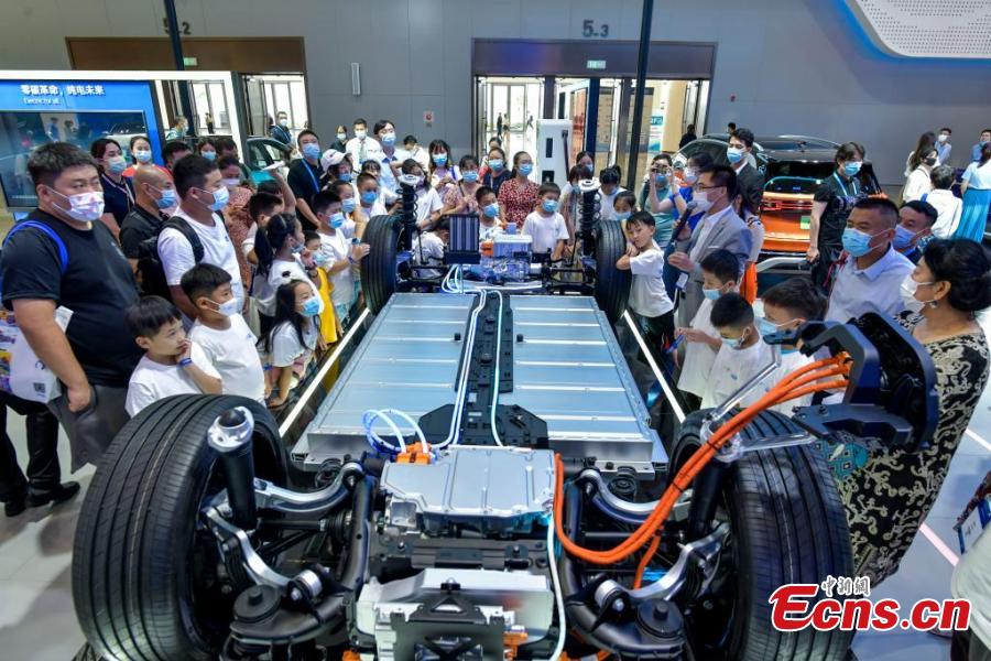 People visit the 2021 World New Energy Vehicle Congress in Haikou, Hainan Province, September 16, 2021. (Photo: China News Service/Luo Yunfei)