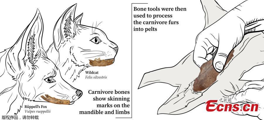 Photo released on September 17, 2021 shows the bones of rüppell's fox and wildcat were used as tools to process the carnivore furs into pelts. (Photo/Agencies)