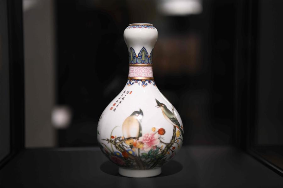 A porcelain collection made in the reign of Emperor Qianlong (1736-1799 A.D.) from China’s Qing Dynasty (1636-1912) is on display in the Louvre in Paris, Sept. 22, 2021. (Photo: China News Service/Li Yang)