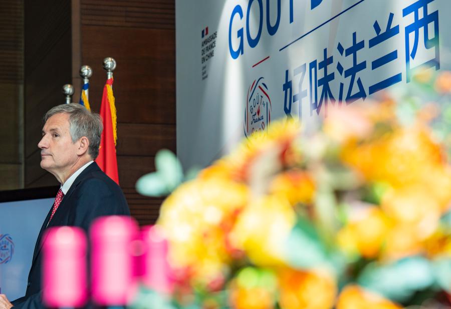 Laurent BILI, the French Ambassador to China, delivers a speech on the opening ceremony of the Good French Campaign on Oct. 8, 2021, in Beijing. (Photo: China News Service/Hou Yu)