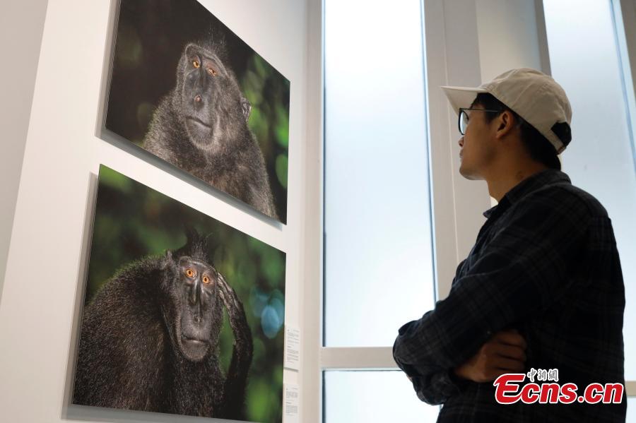 A visitor appreciates the photos at the "Born to Be Wild" photography exhibition in Kunming, Yunnan Province, Oct. 11, 2021. (Photo: China News Service/Li Jiaxian)