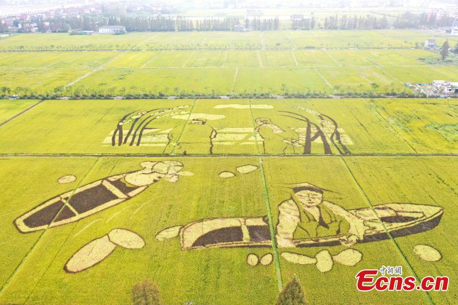 This photo taken on Oct. 14, 2021, shows a rice paddy field painting in Hangzhou, Zhejiang Province. (Photo: China News Service/Wang Gang)