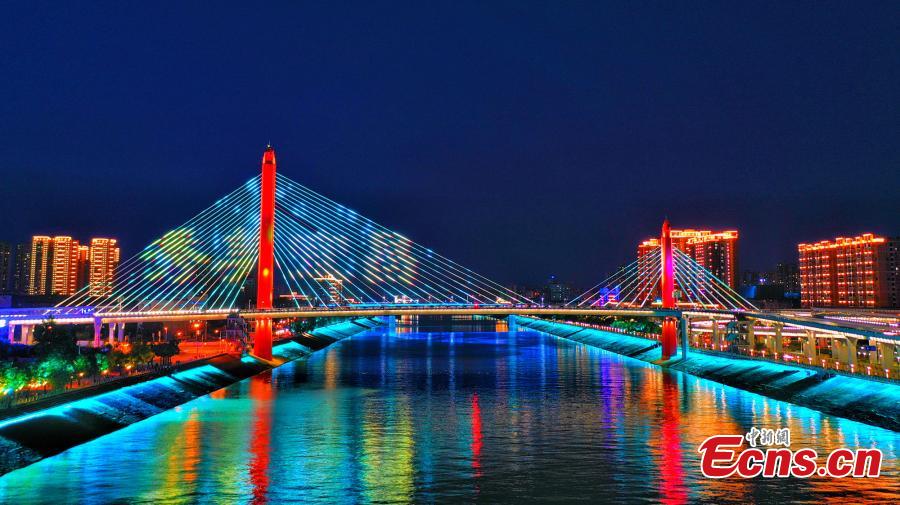 Colorful lights light up the night sky in Yichang, central China's Hubei Province. (Photo/Zhou Xingliang)