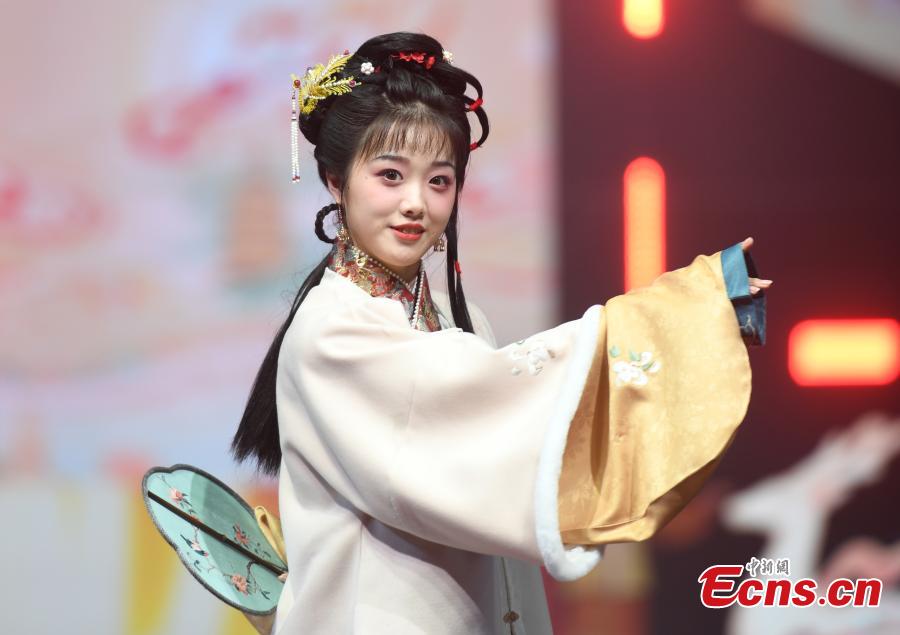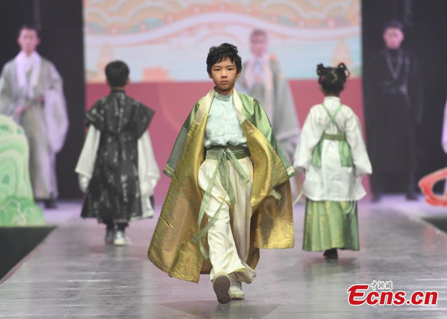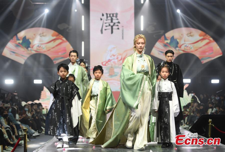 Models in traditional Chinese costume walk the runway on Oct. 17. A fashion show was staged in Hangzhou, Zhejiang Province on Sunday to show the beauty of traditional Chinese costume. (Photo: China News Service/Wang Gang)