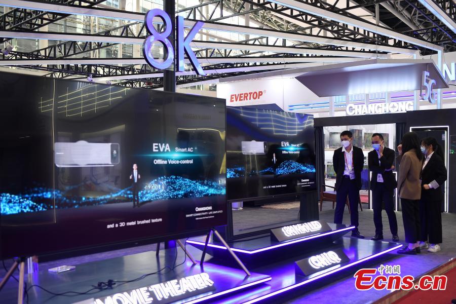 Smart home appliances attract visitors at the Canton Fair in Guangzhou, capital of south China's Guangdong Province, Oct. 17, 2021. (Photo: China News Service/Chen Chuhong)