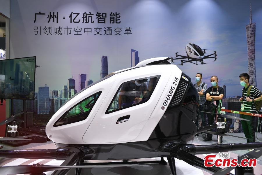A self-driving aircraft is exhibited at the 130th session of the China Import and Export Fair in Guangzhou, capital of south China's Guangdong Province, Oct. 17, 2021. (Photo: China News Service/Chen Chuhong)