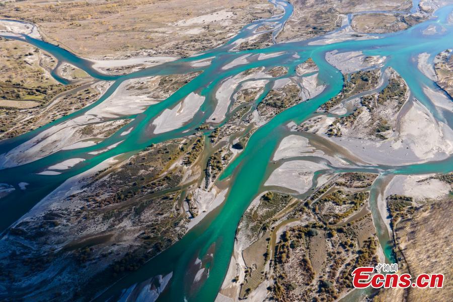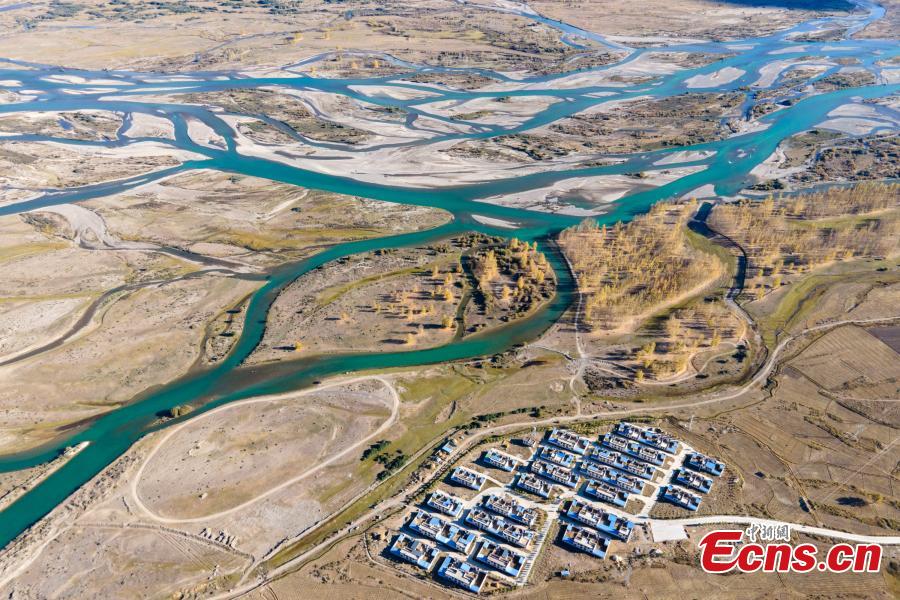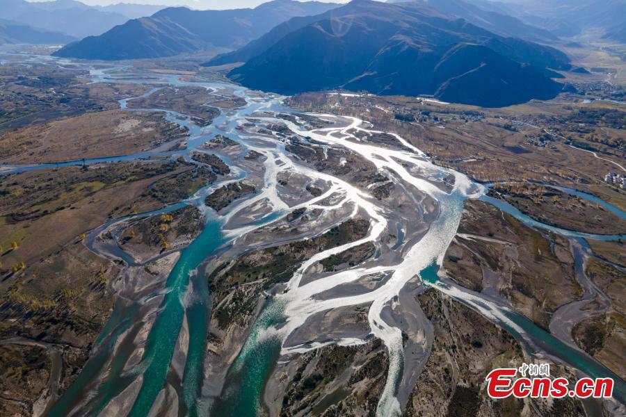 Aerial photo taken on Oct. 16, 2021 shows the scenery of Lhasa Valley in Linzhou County, Lhasa City, southwest China's Tibet Autonomous Region. (Photo: China News Service/Jiang Feibo)