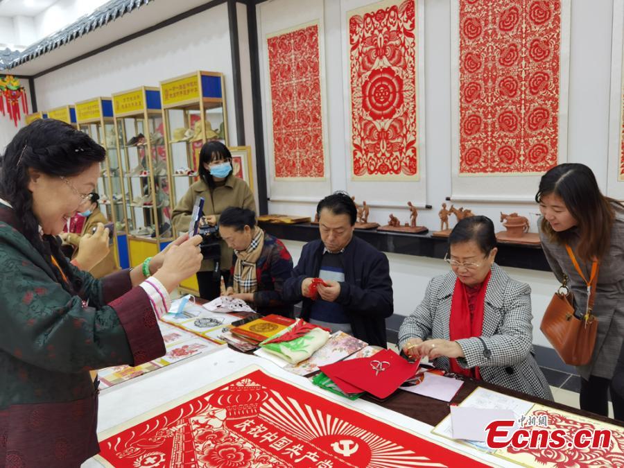 Handicrafts depict various ethnic characteristics at a local exhibition in Lanzhou, Guasu Province, Oct. 17, 2021.