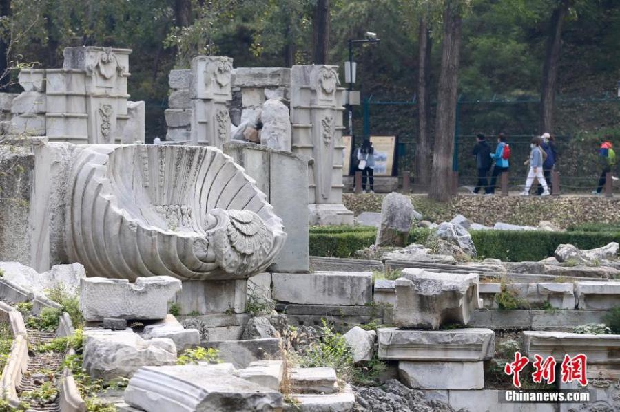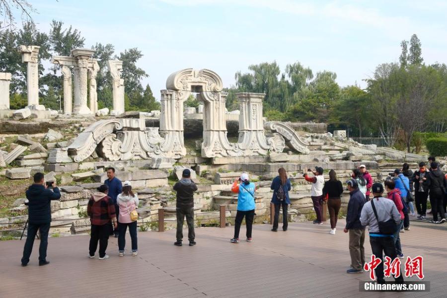 Tourists visit the Yuanmingyuan Ruins Park, Beijing, Oct. 18, 2021. (Photo: China News Service/Yi Haifei)
